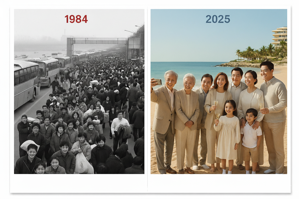 1984年の長い列から2025年の家族旅行まで」